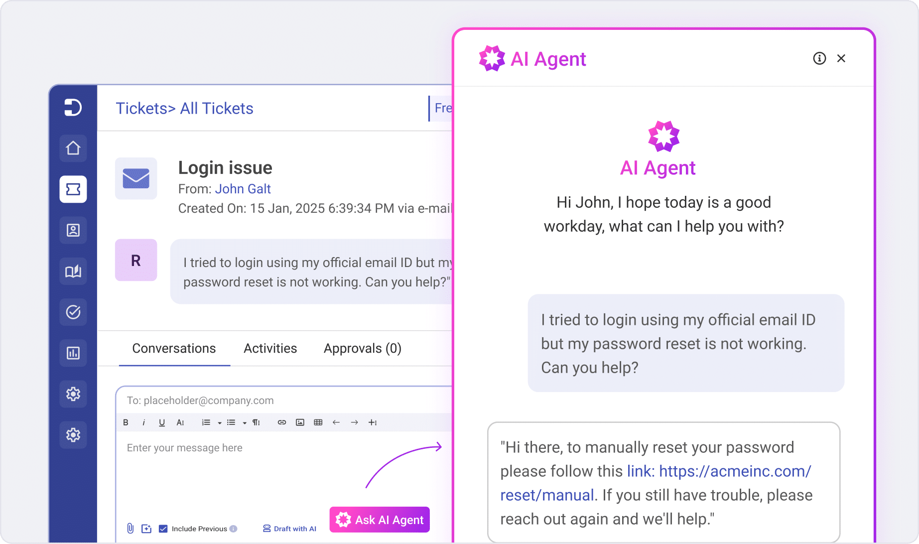 With automations, SLAs, Round Robin, change management, and most importantly our AI-agent, the Desk365 ticketing system is a power-packed helpdesk designed for law firms like yours. Â